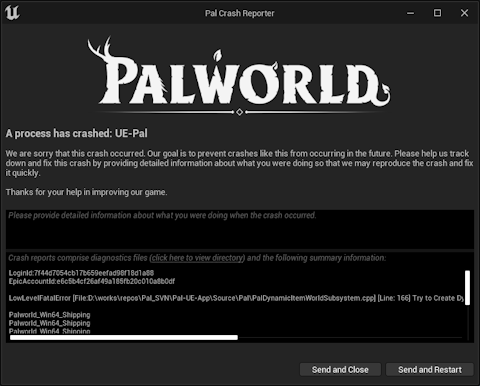 It will typically mention something about either PalDynamicItemWorldSubsystem or StaticItemId.